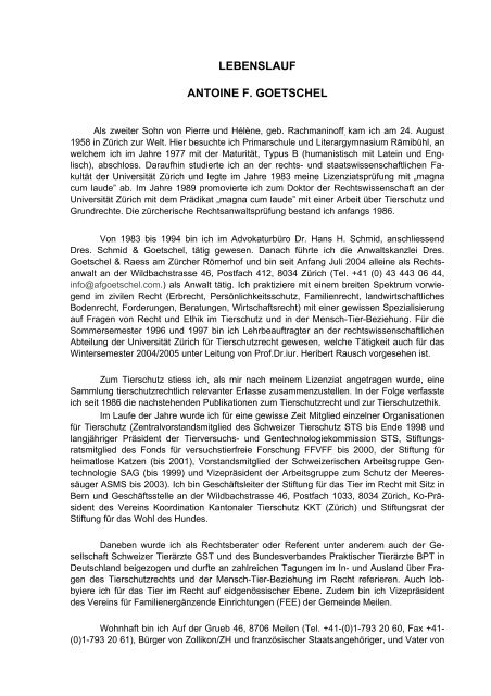 Lebenslauf Antoine F Goetschel Stiftung Fur Das Tier Im Recht by yumpu.com