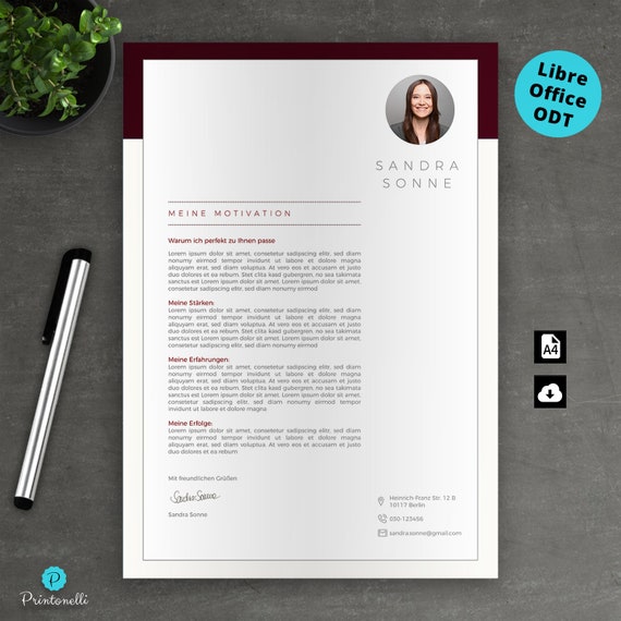 Bewerbung Vorlage Fur Libreoffice Odt Deckblatt Lebenslauf Anschreiben Mac Oder Pc No 6 1 Dunkelrot by etsy.com