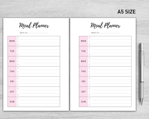 A5 Meal Planner Druckbare Wochenplaner Mahlzeit Menu Planer Druckbare Mahlzeitzeitplan Einkaufsliste Meal Planner Halbe Grosse Essen Planer by etsy.com