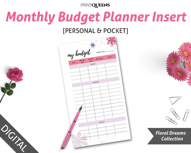 Monatliche Budget Planer Druckbare Einsatz Haushalt Binder Budget Planer Bedruckbar Personliche Kalender Einfugen Pocket Planner Einsatz by etsy.com