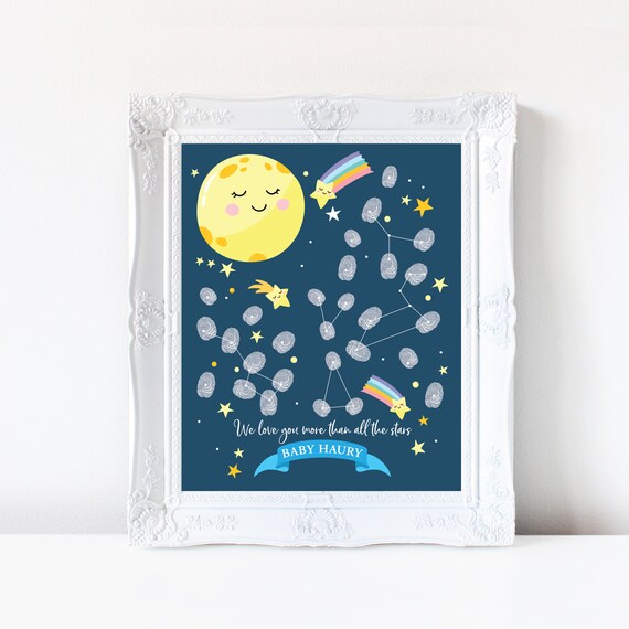 Fingerabdruck Sternen Und Mond Gastebuch Konstellation Baby Dusche Sterne Gastebuch Wandkunst Fingerabdruck Sterne Digitale Dateien by etsy.com