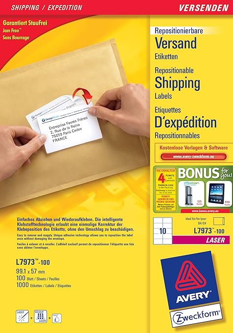 Avery Zweckform L7973 100 Repositionierbare Versand by amazon.de