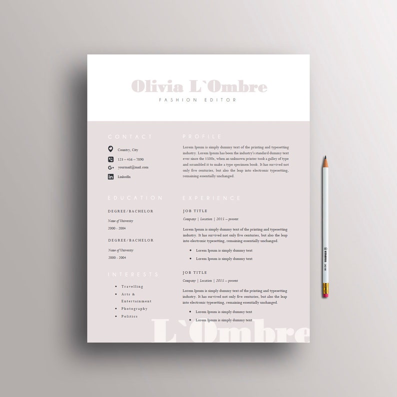 Lebenslauf Vorlage Cv Vorlage Cover Buchstabe Beispielseite Fur Ms Word Sofortiger Digitaler Download Olivia by etsy.com