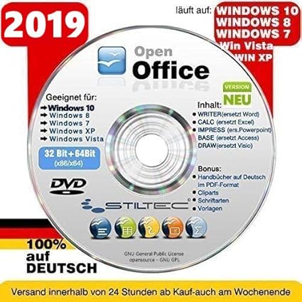 Open Office Paket Cd Dvd Textverarbeitung Schreibprogramm Kompatibel Zu Word Excel Fur Windows 10 Windows 7 8 Xp Vista by amazon.de