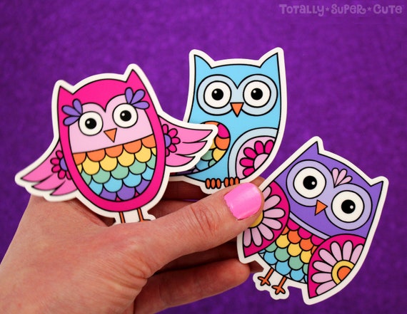 Susse Eulen Vinyl Aufkleber Sticker Set Drei Susse Eulen Entzuckende Glucklich Aufkleber Auto Aufkleber Geschenk Laptop Aufkleber Kinder Dekor by etsy.com