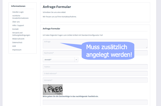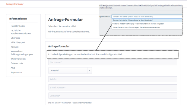 Shopware Modul Artikel Feld Textarea Im Anfrageformular by uvalasoft.de