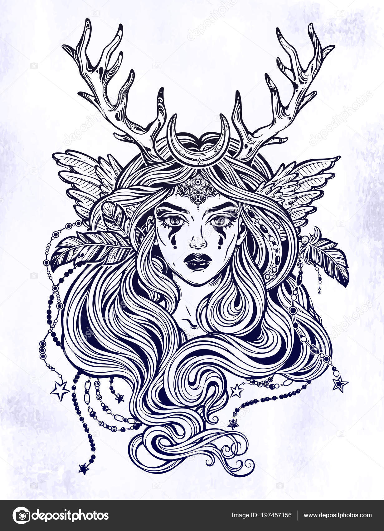 Schamane Magische Elfenfrau Hirsch Antlerss Mit Langen by de.depositphotos.com