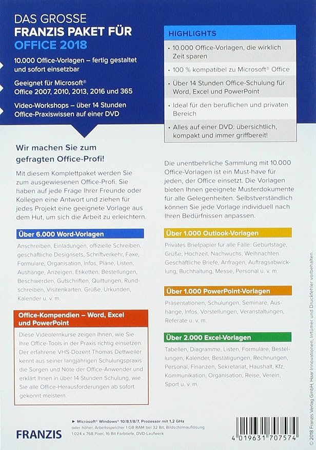 Franzis Das Grosse Franzis Paket Fur Office 2018 Office by amazon.de