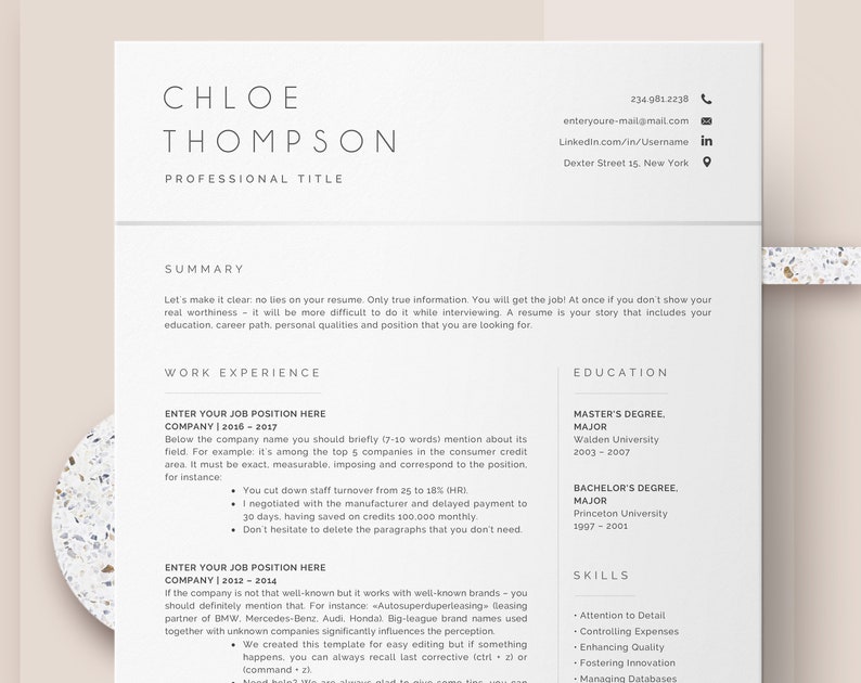 Resume And Cover Letter Template Cv Template Professional Resume Template Word Instant Download Resume Templates Minimalist Resume Pages by etsy.com
