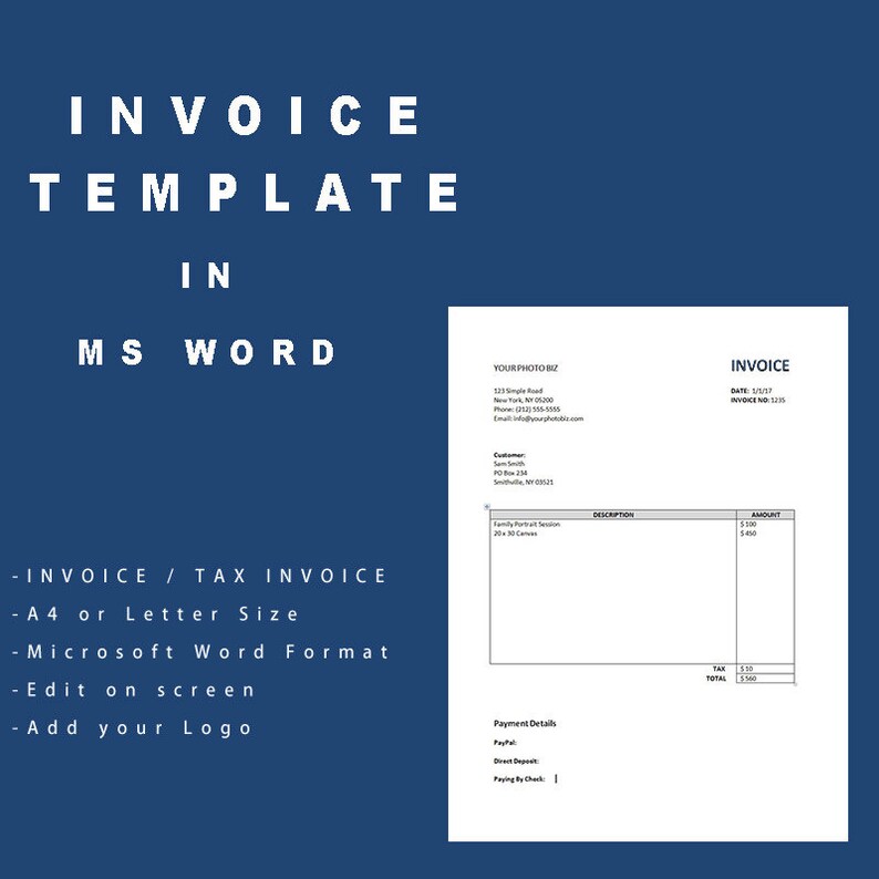 Rechnung Vorlage Microsoft Word Steuer Rechnung A4 Grosse Fotografie Rechnungsvorlage by etsy.com