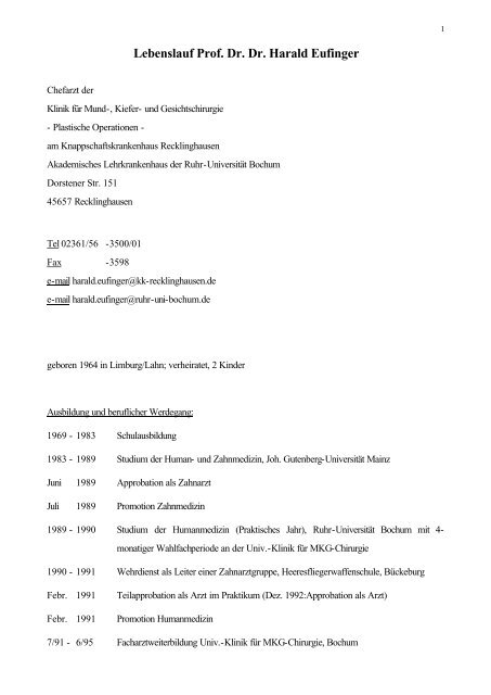 Lebenslauf Prof Dr Dr Harald Eufinger International by yumpu.com