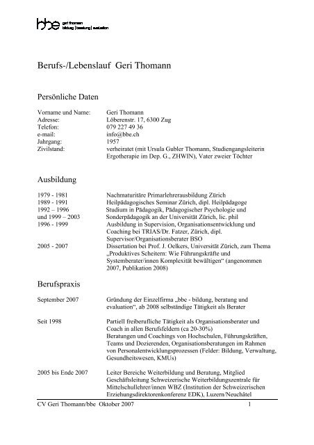 Berufs Lebenslauf Geri Thomann Bbe Geri Thomann Bildung by yumpu.com