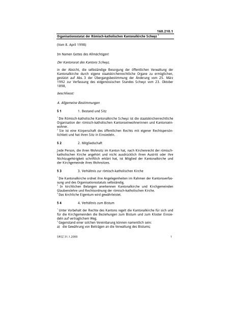 Organisationsstatut Der Romisch Katholischen Kanton Schwyz by yumpu.com