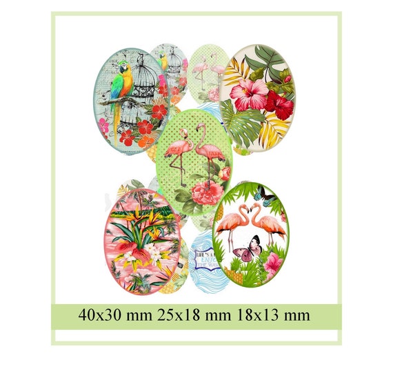 Cabochon Vorlagen Cabochon Bilder Tropish Ovale Oval Bilder Oval Cabochon Tropish Blumen Flamish Vogel Digital Oval by etsy.com