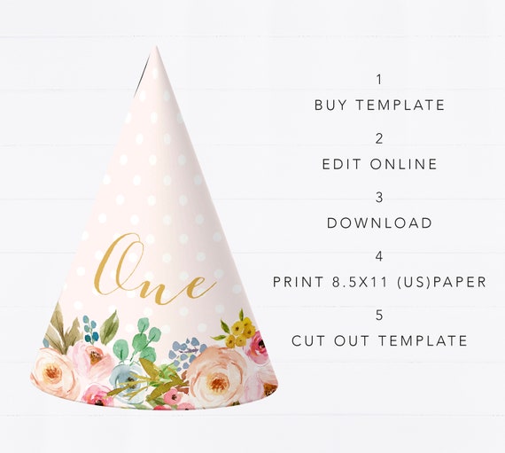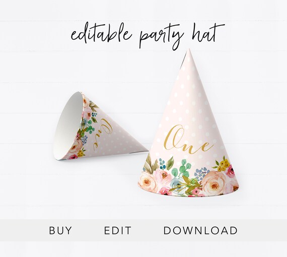 Editierbare Partyhut Ersten Geburtstag Hut Vorlage Ersten Geburtstag Hut Geburtstagskind Hut Madchen Geburtstag Hut Sofortiger Download by etsy.com