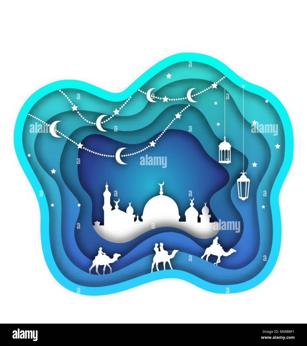 Ramadan Kareem Hintergrund Moschee Laternen Mond Kamele by alamy.de