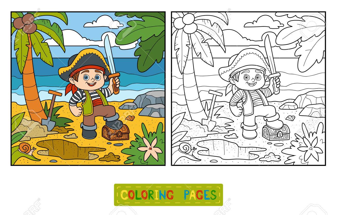 Malbuch Mit Sitzendem Piraten Vektor Abbildung by de.dreamstime.com