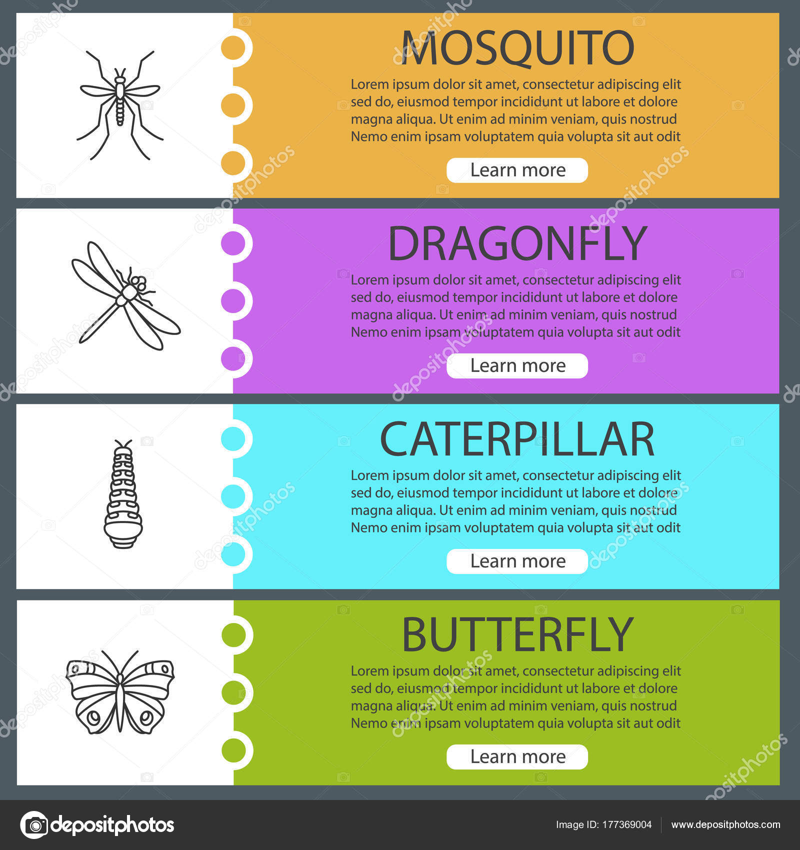 Insekten Web Banner Vorlagen Set Raupe Schmetterling Libelle by de.depositphotos.com