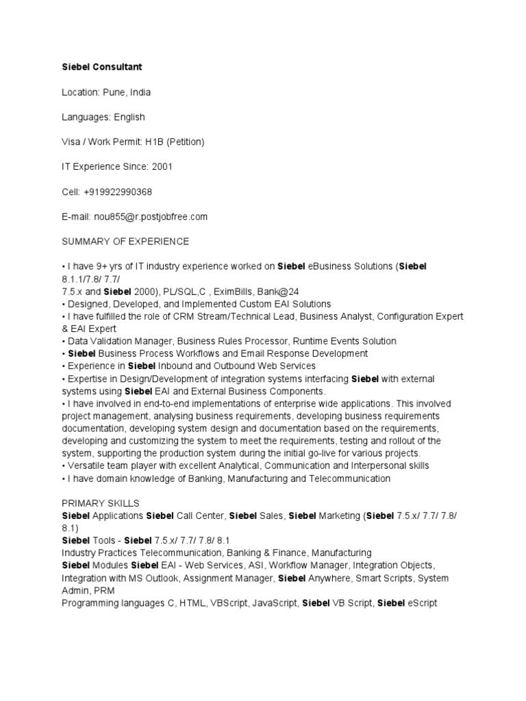 Siebel Eai Consultant Resume by universitydegree454.web.fc2.com