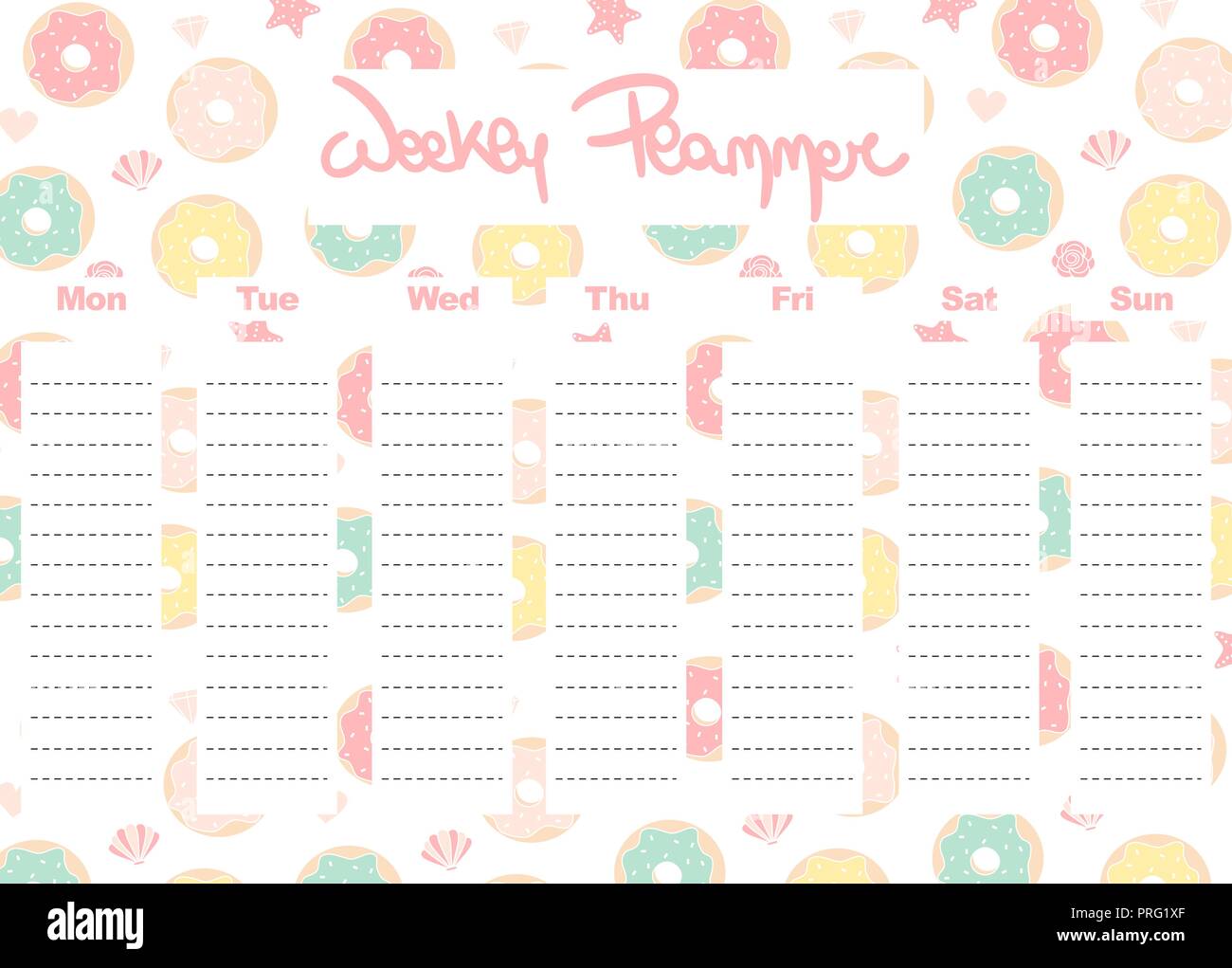 Susse Schone Vektor Wochentlicher Planer Vorlage Mit Bunten by alamy.de