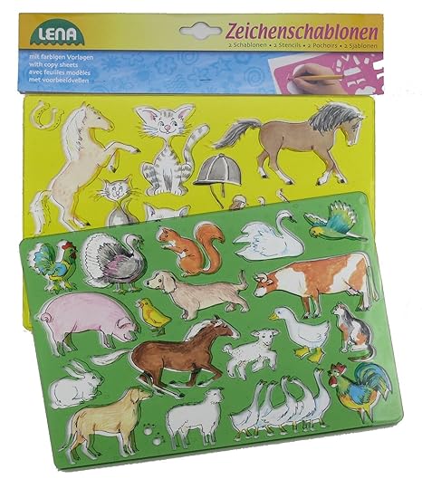 Lena 65767 Zeichenschablonen Set Pferde Katzen Und Bauernhoftiere Mit 2 Schablonen Mit Motiven Und Farbvorlagen Fur Tiere Vom Bauernhof by amazon.de