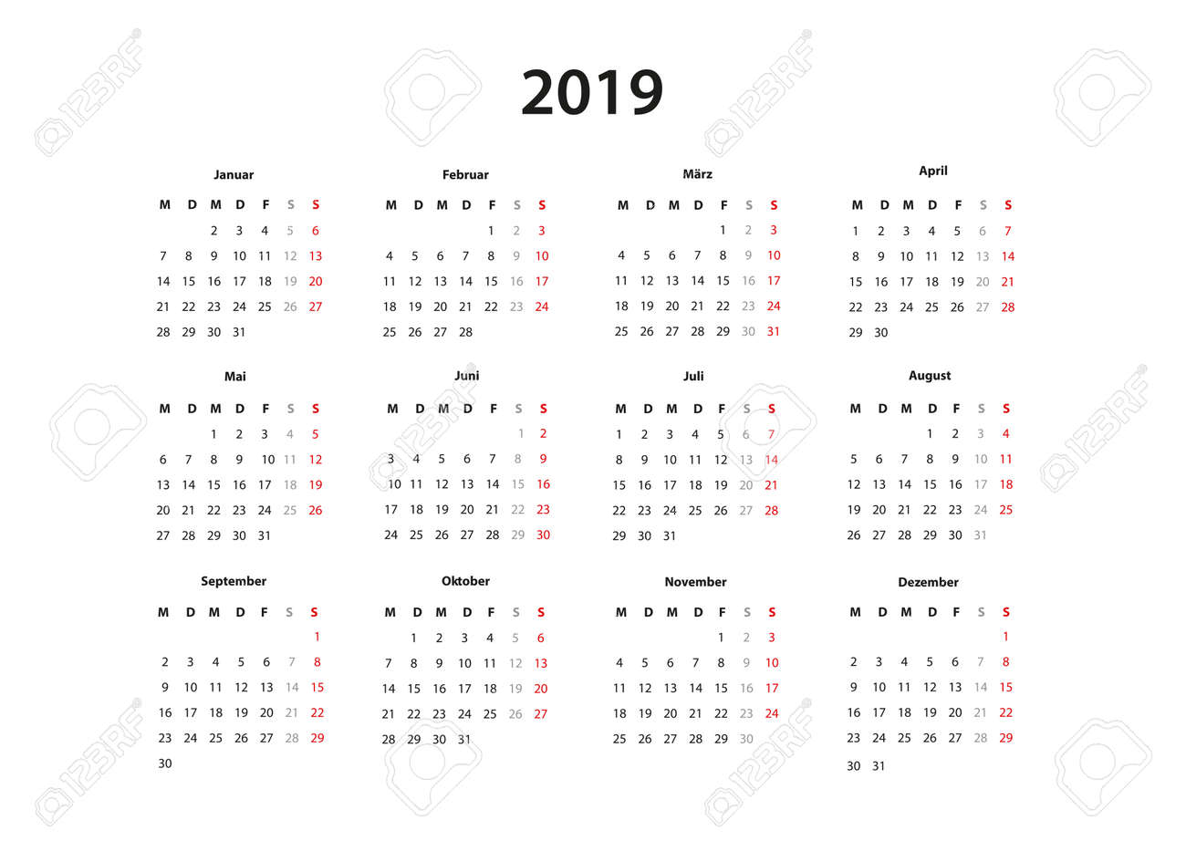 Kalender 2019 Kalender Einfache Vorlage Deutsch by 123rf.com