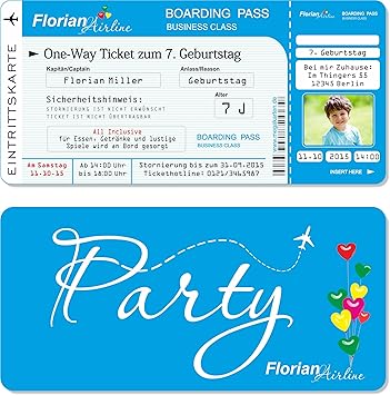 Einladungskarten Kindergeburtstag Als Flugticket Mit Abriss Coupon Blau 10 Stuck by amazon.de