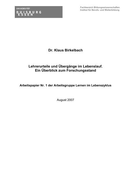 Dr Klaus Birkelbach Lehrerurteile Und Ubergange Im by yumpu.com