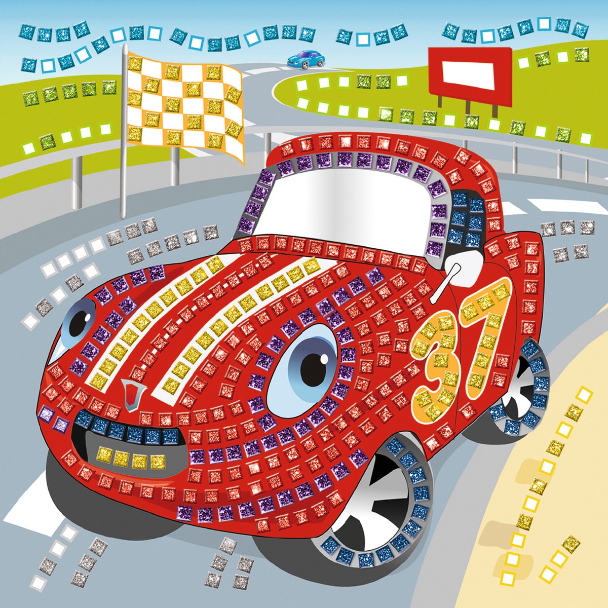 Moosgummi Mosaik Glitter Rennwagen by buntpapierwelt.de