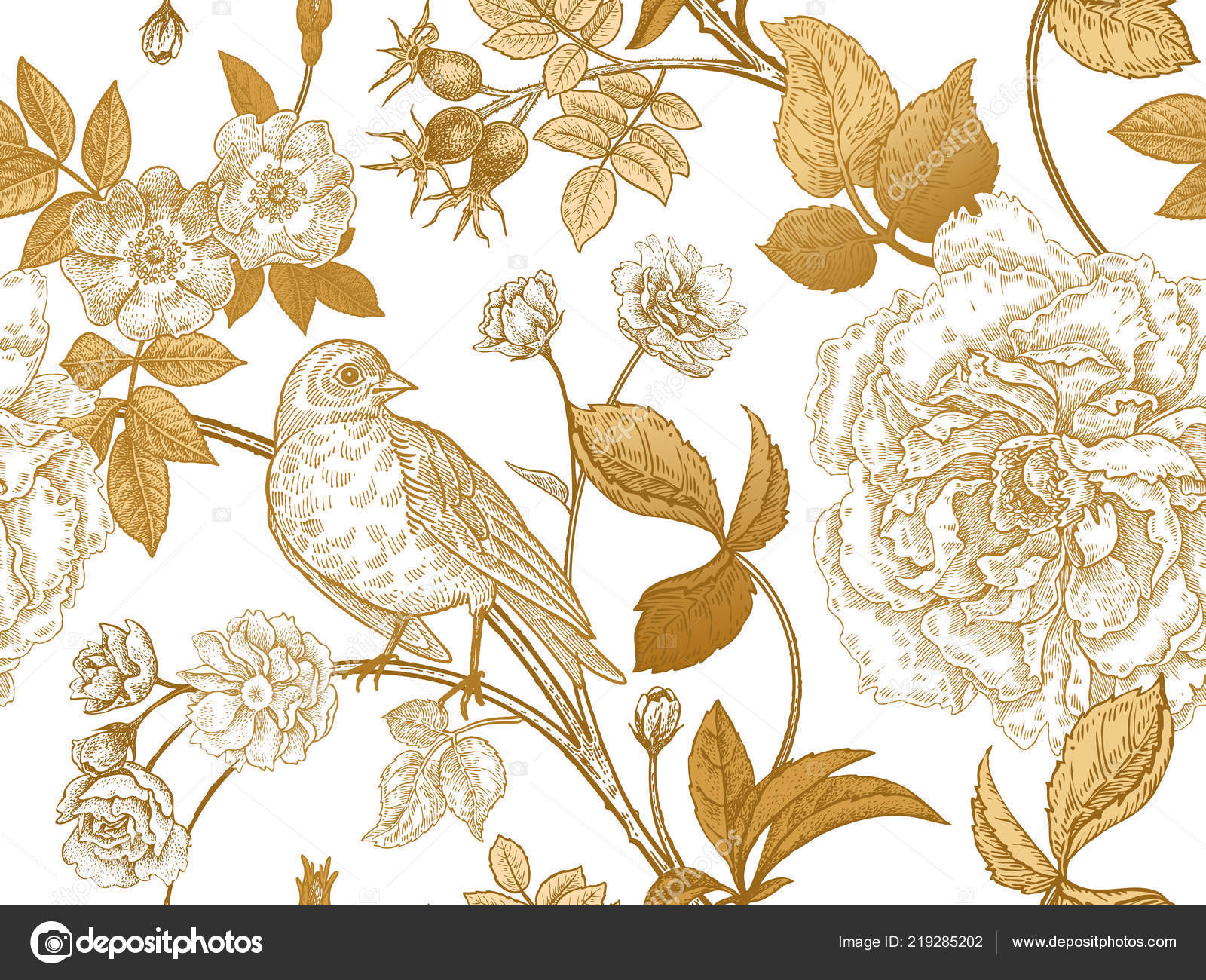 Garten Blumen Rosen Pfingstrosen Und Hundsrose Vogel Auf by de.depositphotos.com