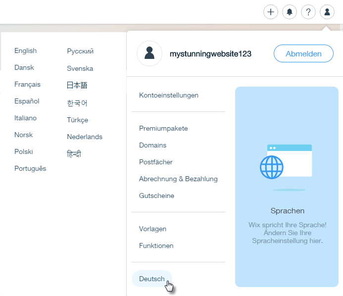 Die Sprache Deines Kontos Der Website Verwaltung Und Des by support.wix.com
